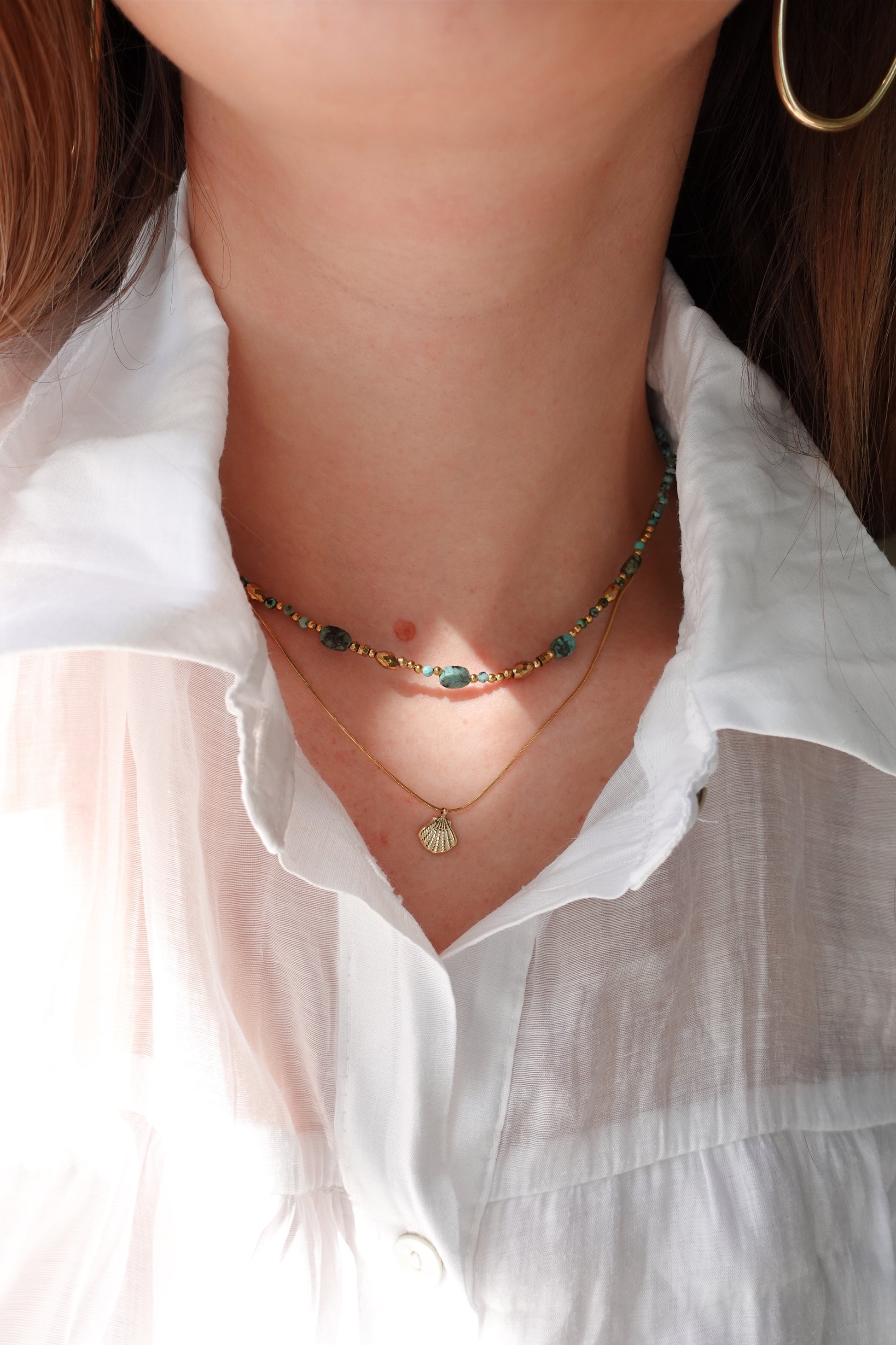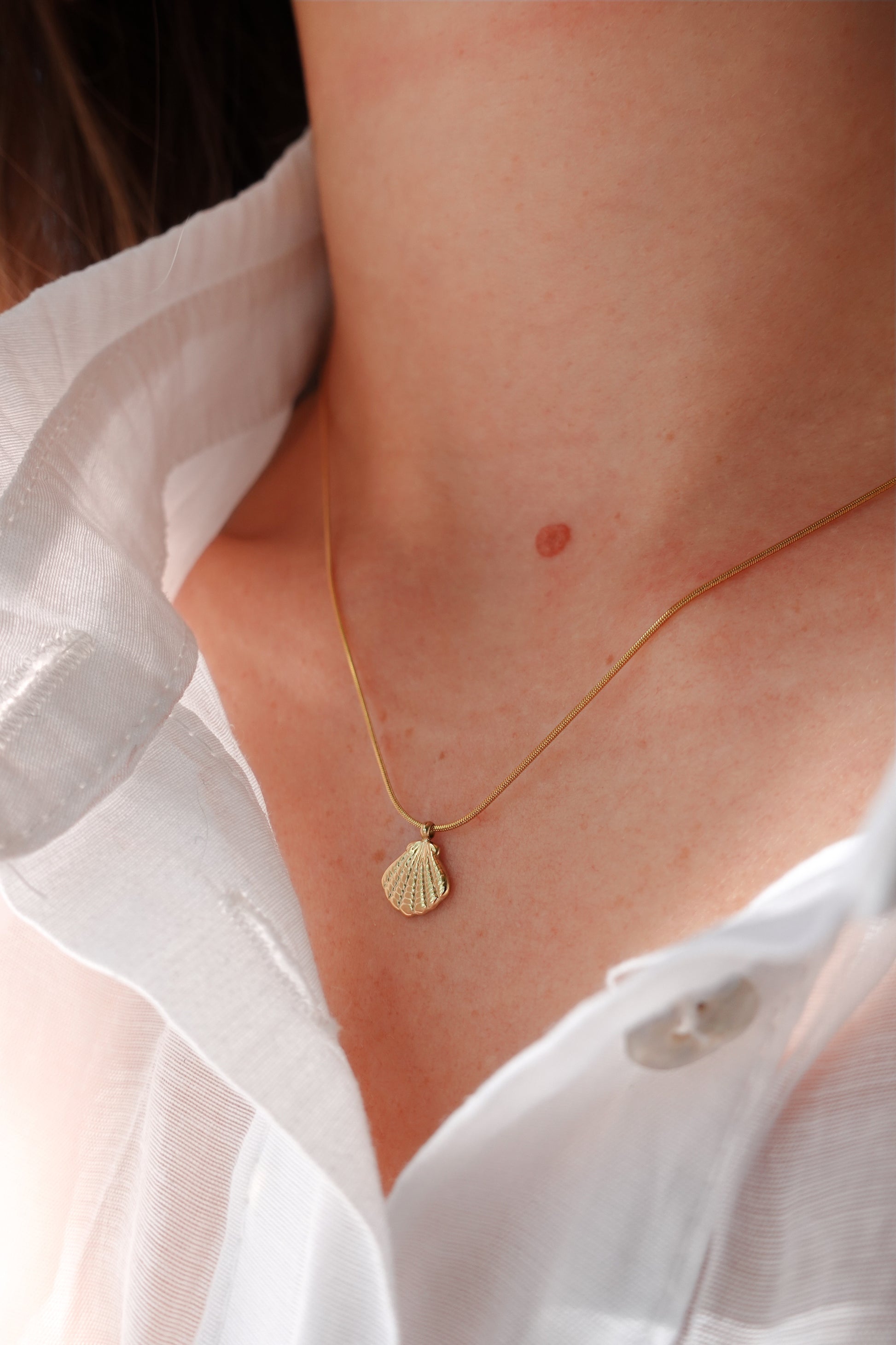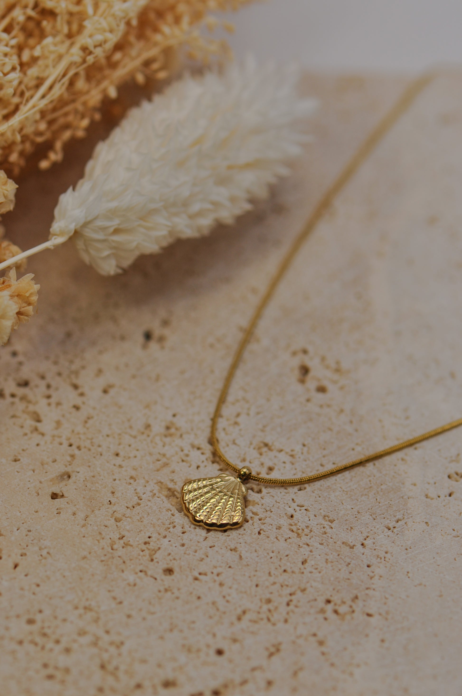 Collier en acier inoxydable. Laissez-vous tenter par le collier Ava avec son petit coquillage. Parfait pour porter seul pour un look minimaliste ou à cumuler avec d'autres bijoux.