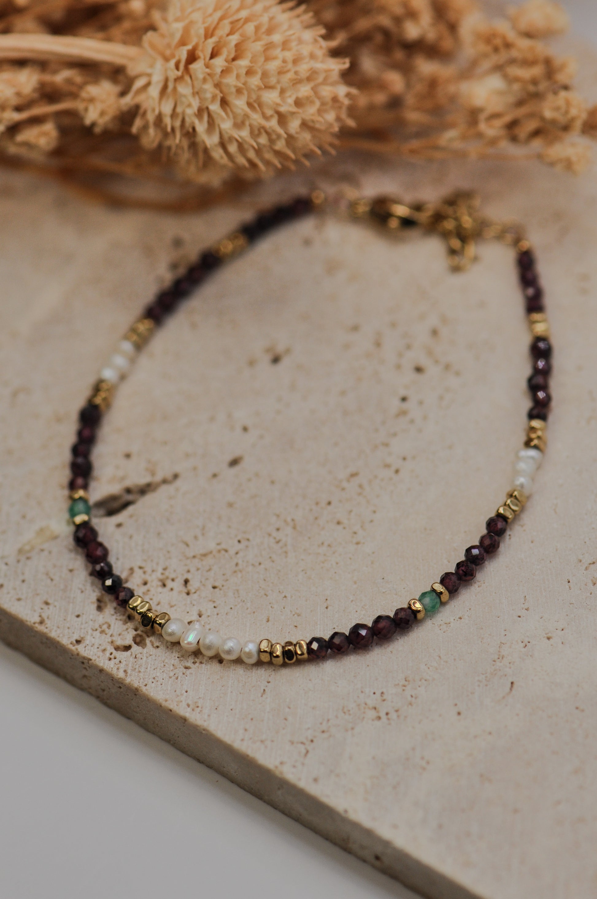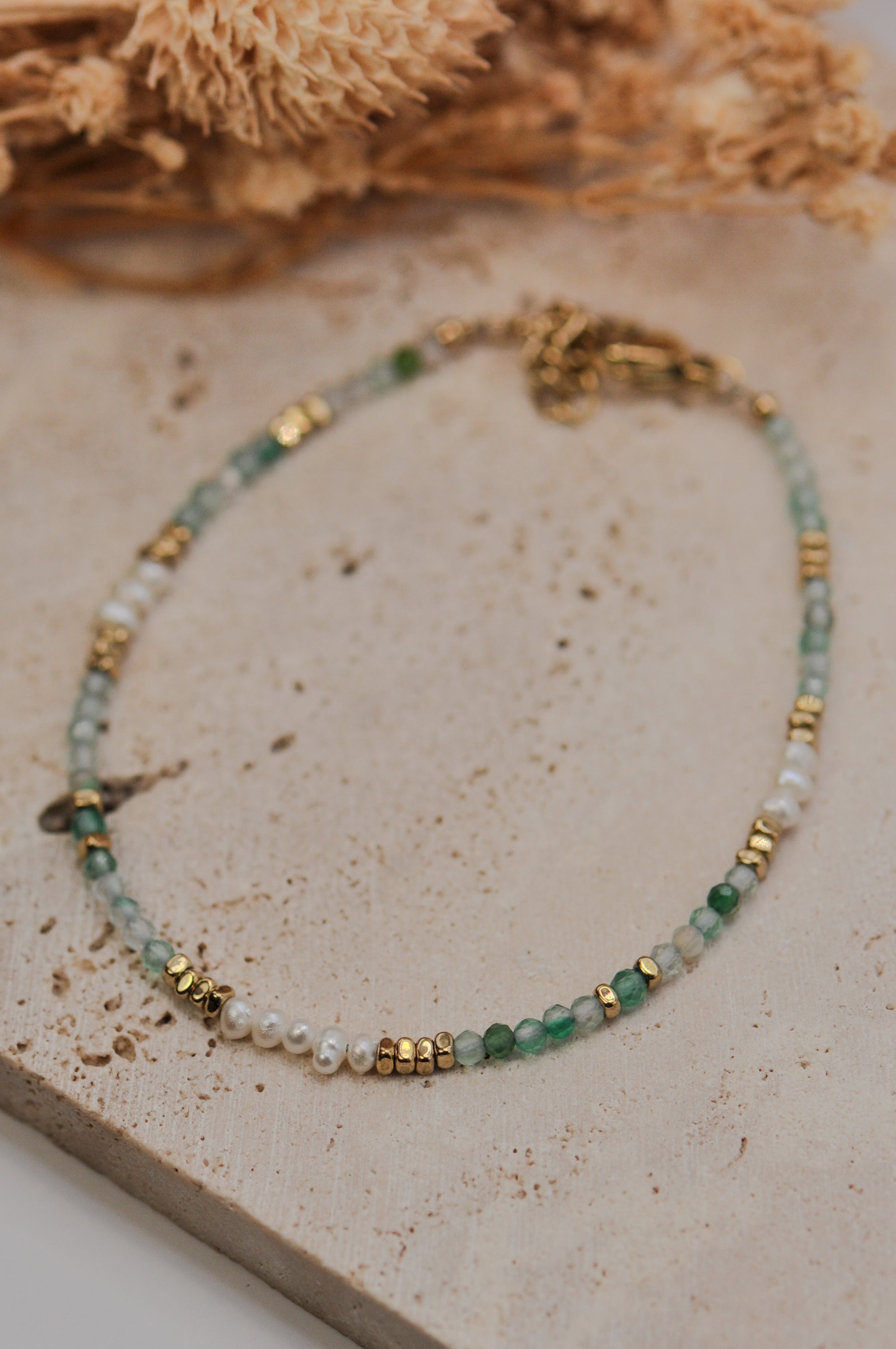 Le bracelet Bora est orné de perles d'eau douce, de véritables pierres naturelles et de perles en acier inoxydable. L'alliage parfait pour sublimer vos tenues.