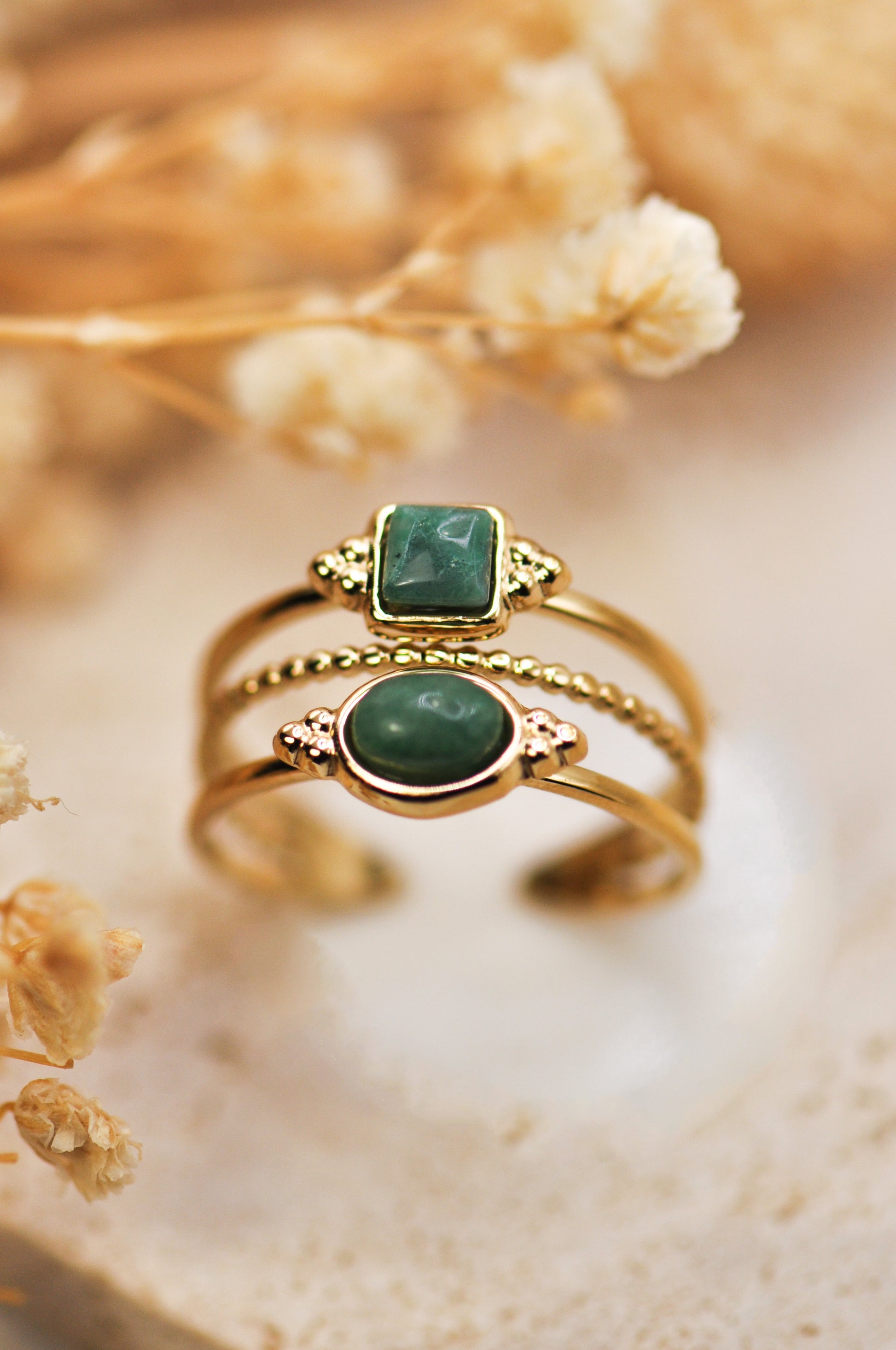 Bague ajustable en acier inoxydable composée de pierres naturelles. La bague Jaïa se distingue par sa finesse et son élégance, idéale pour embellir vos tenues. Tous nos bijoux résistent à l'eau, au soleil et ne rouillent pas dans le temps.