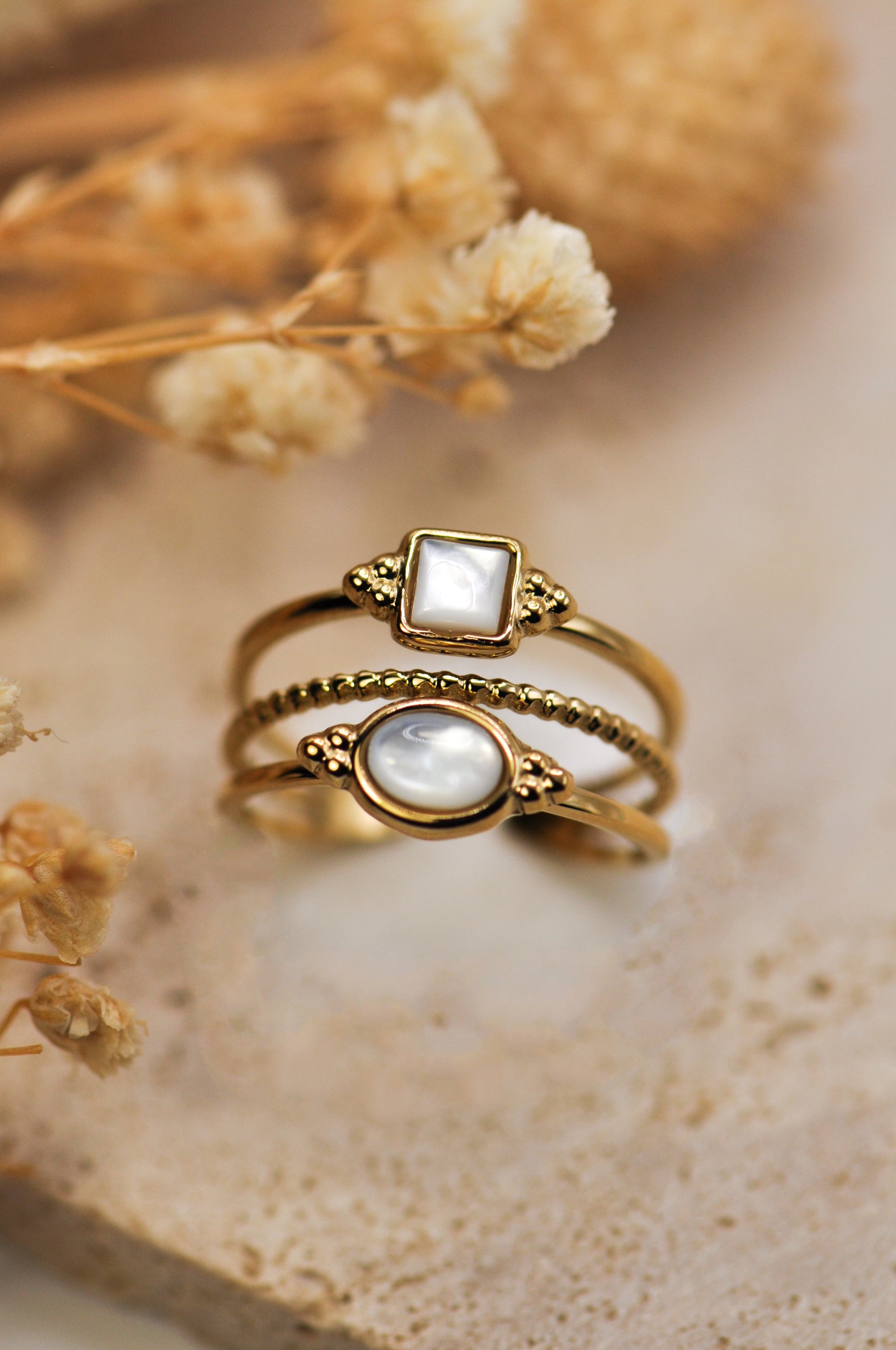 Bague ajustable en acier inoxydable composée de pierres naturelles. La bague Jaïa se distingue par sa finesse et son élégance, idéales pour embellir vos tenues. Tous nos bijoux résistent à l'eau, au soleil et ne rouillent pas dans le temps.