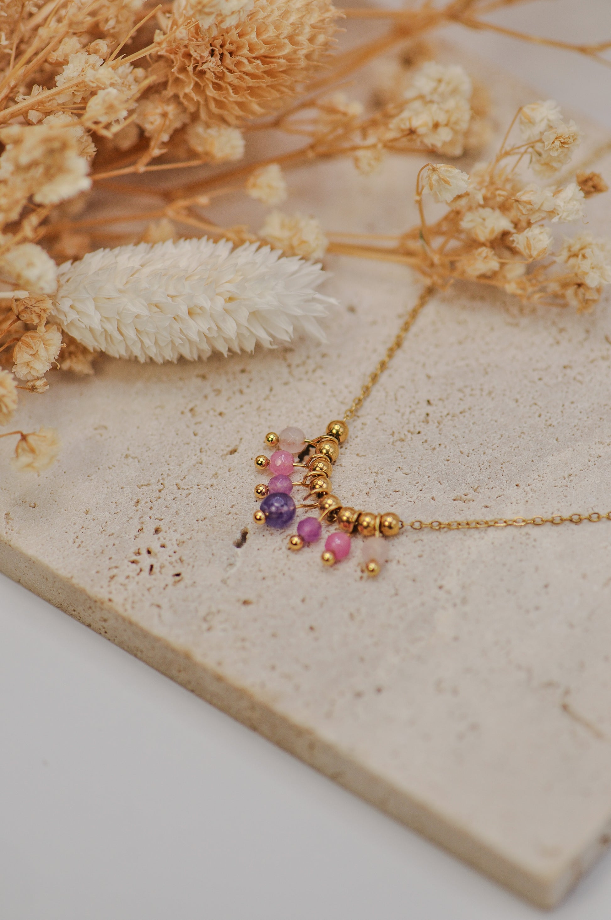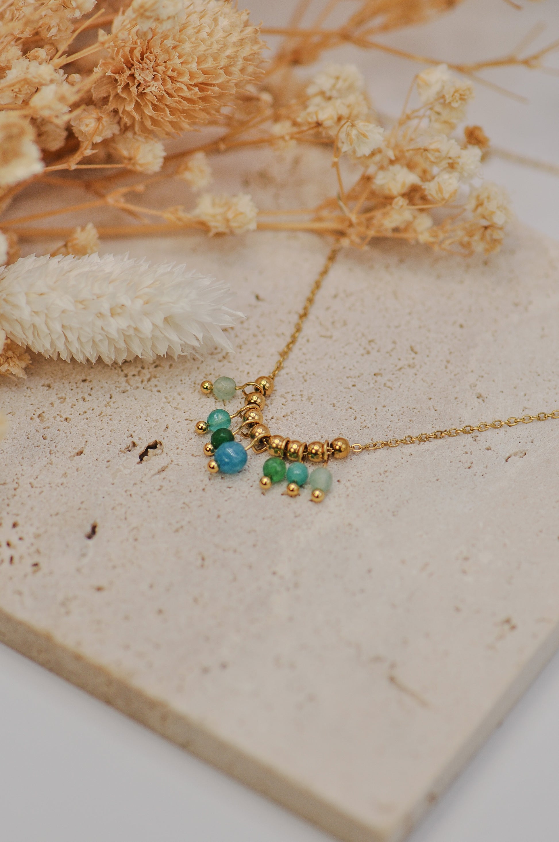 Collier en acier inoxydable et pierres naturelles. Le collier Abby est le bijou coloré et lumineux de notre nouvelle collection.