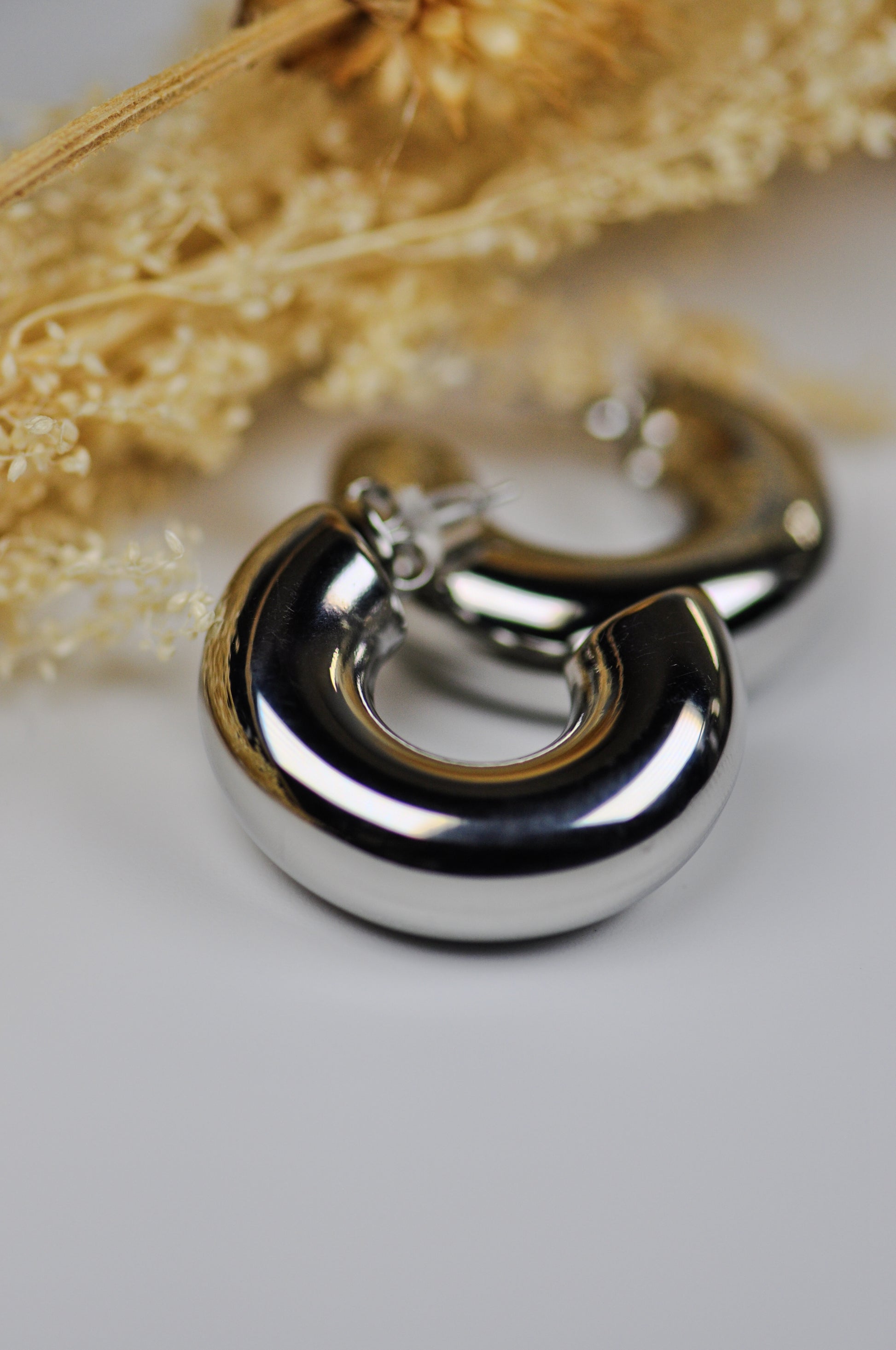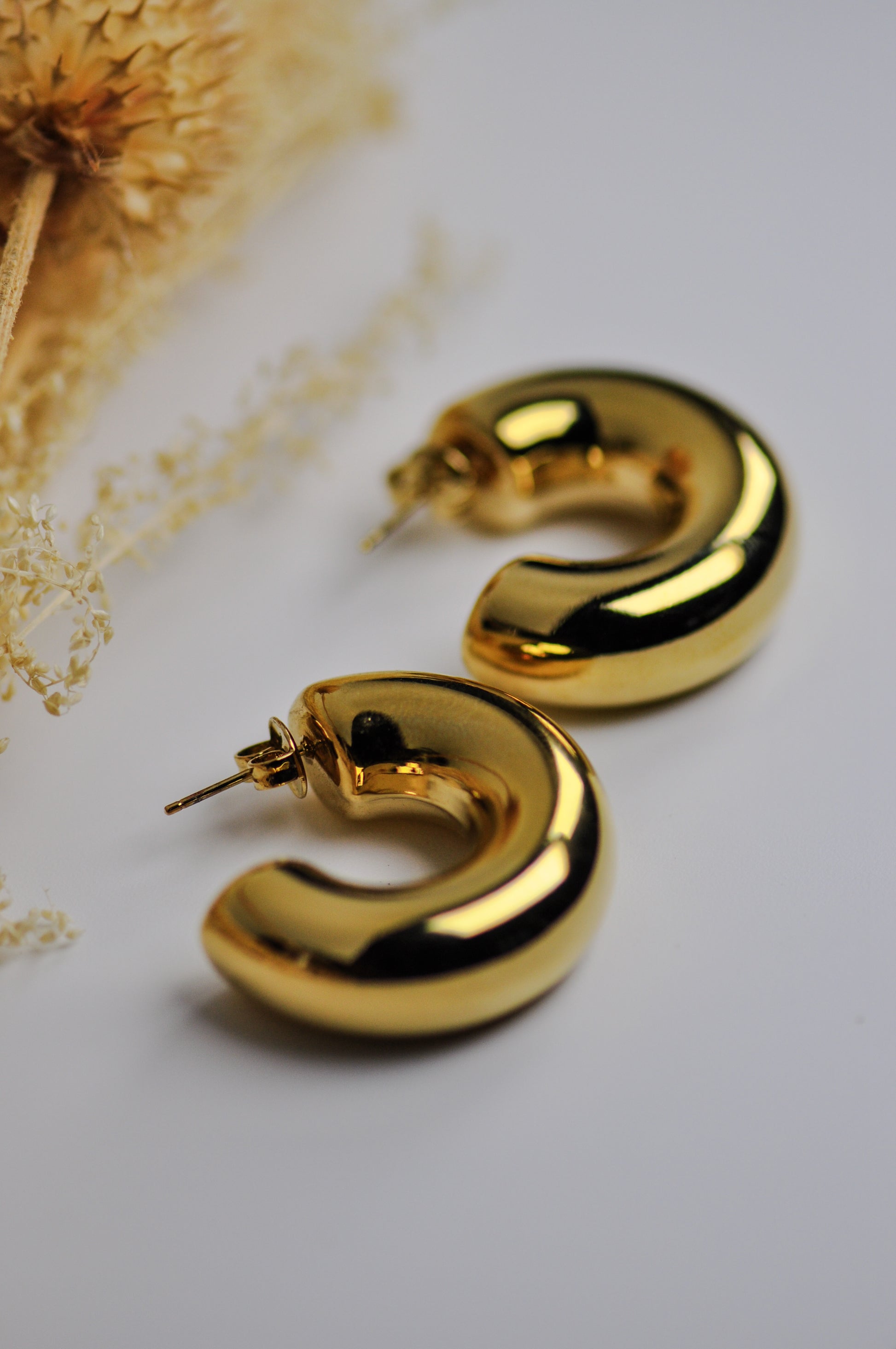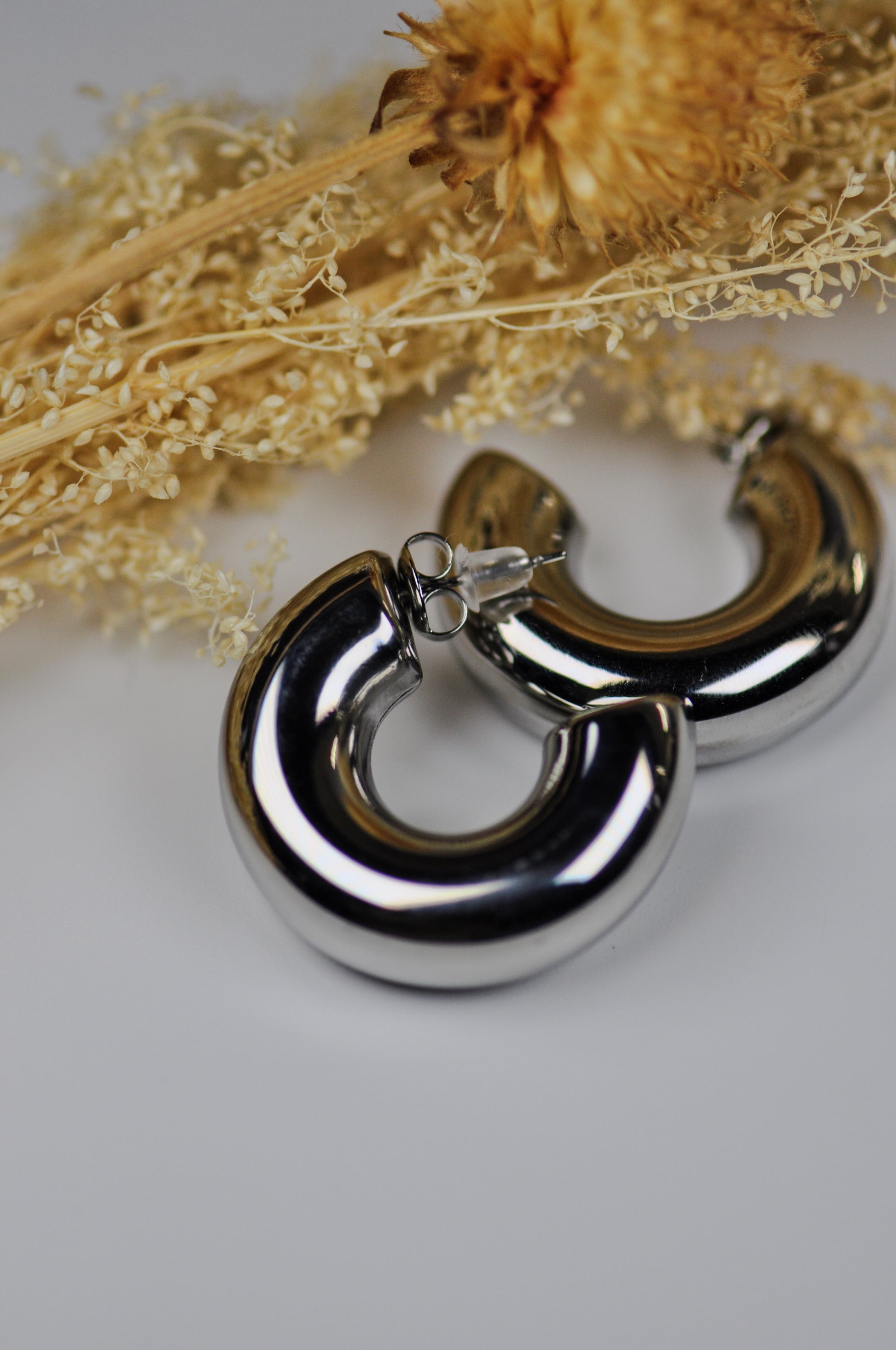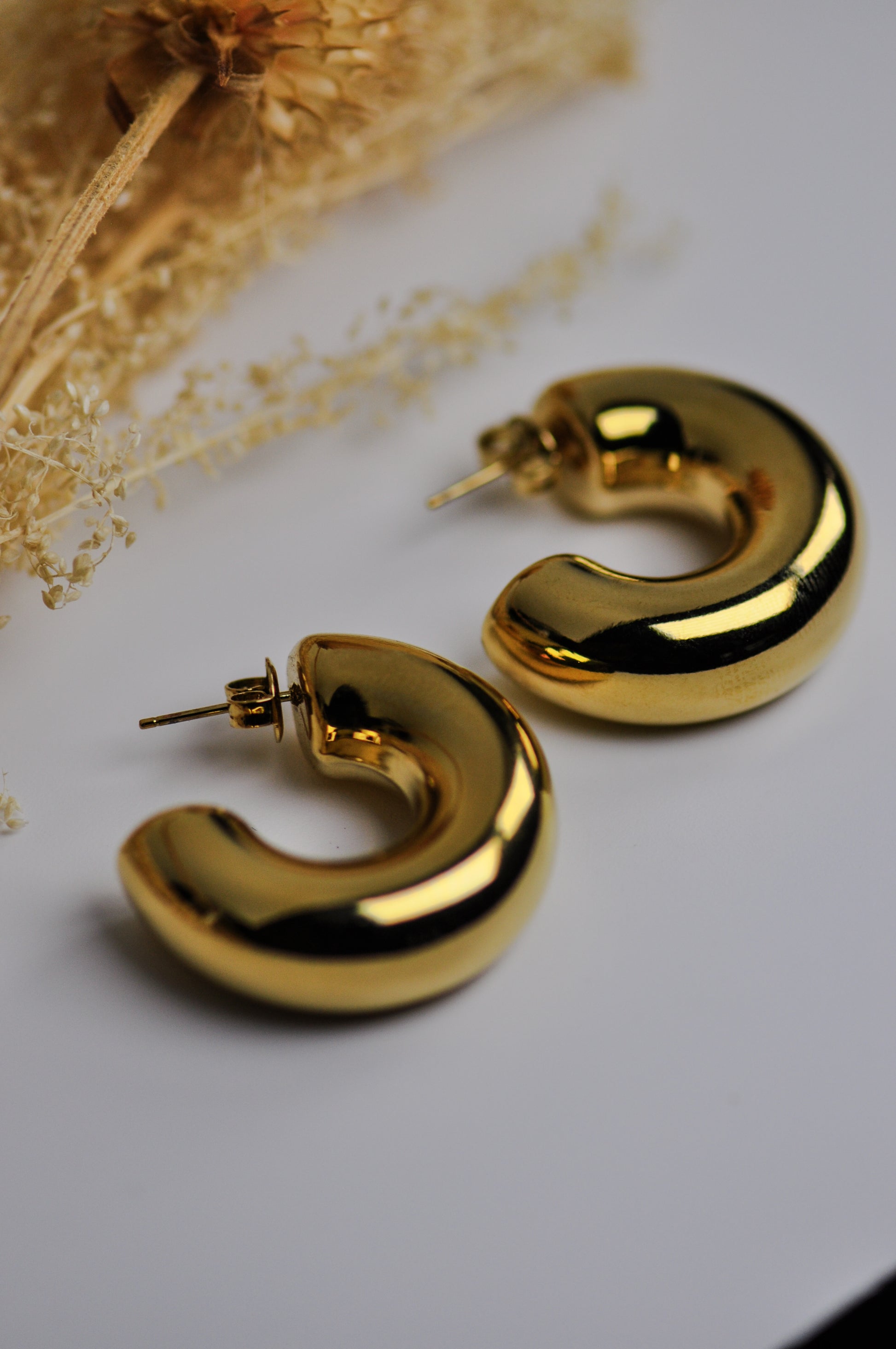 Créoles épaisses en acier inoxydable. Tous nos bijoux résistent à l'eau, au soleil et ne rouillent pas dans le temps.