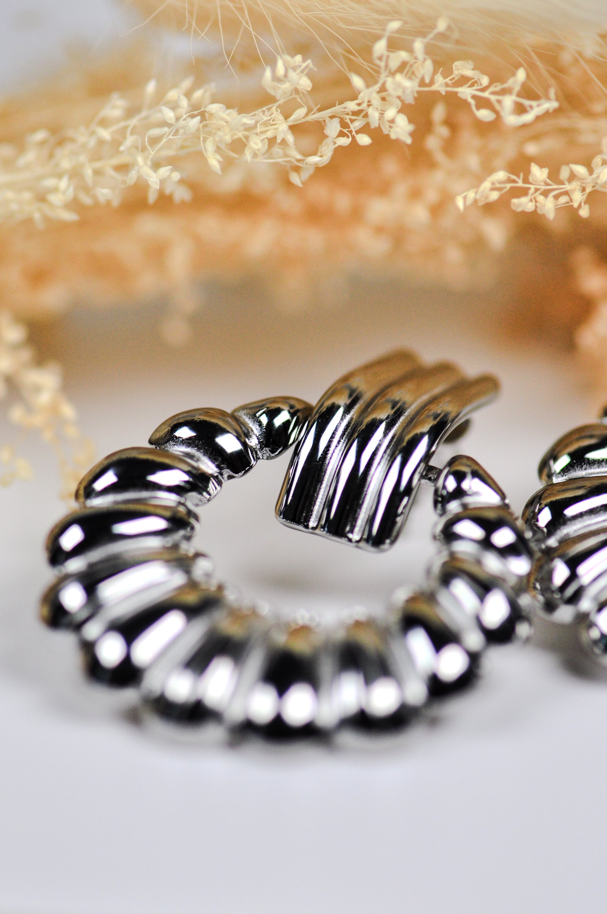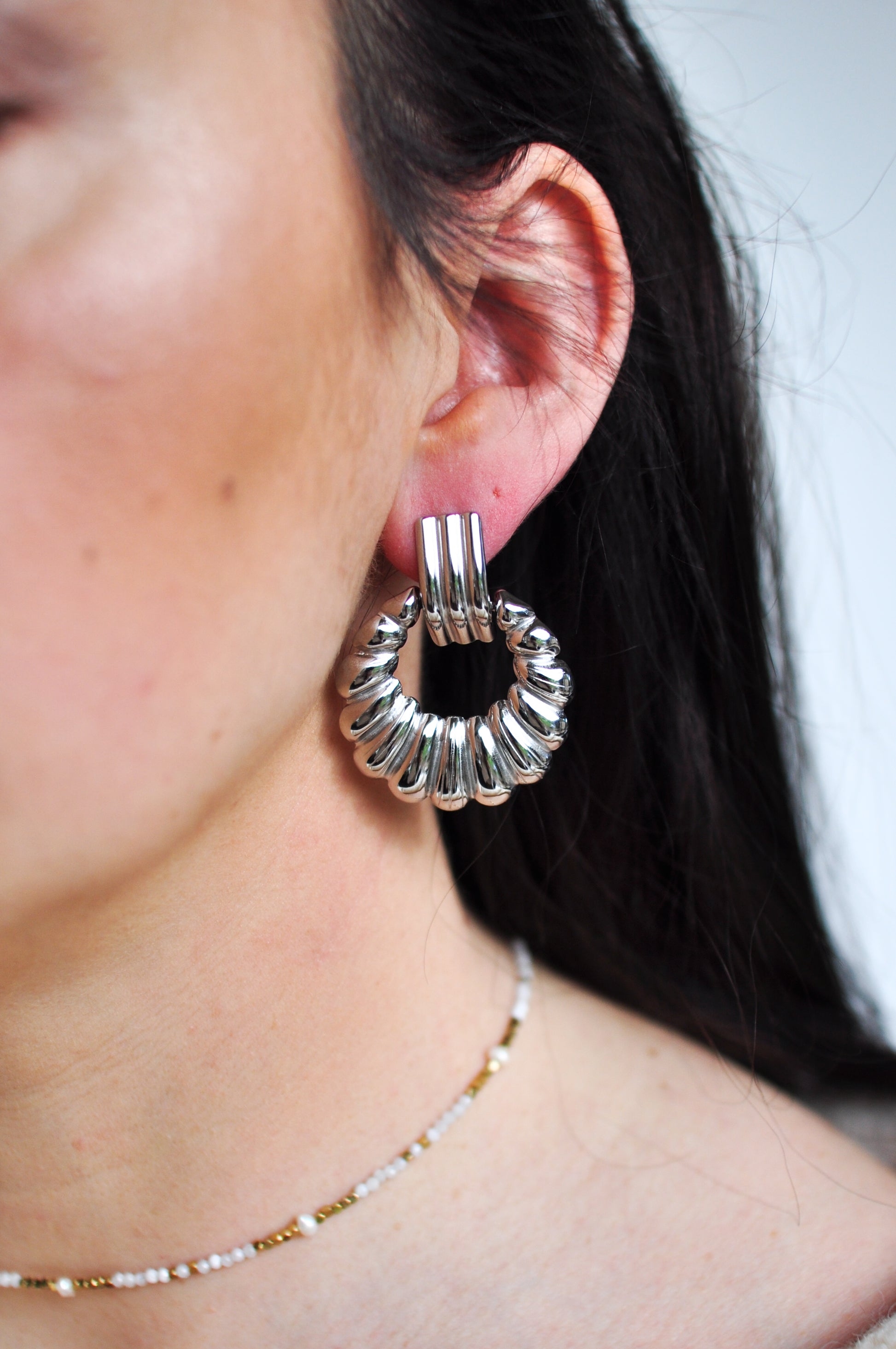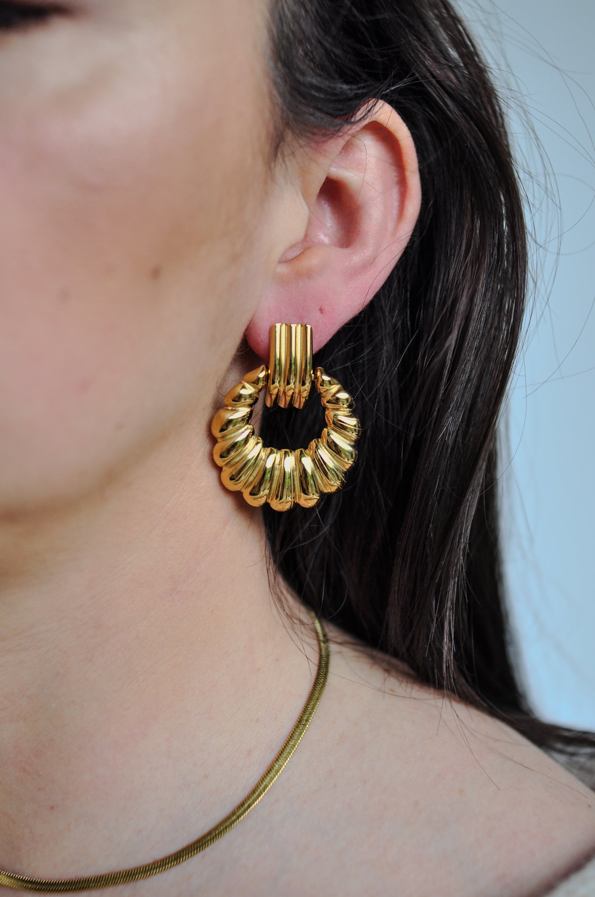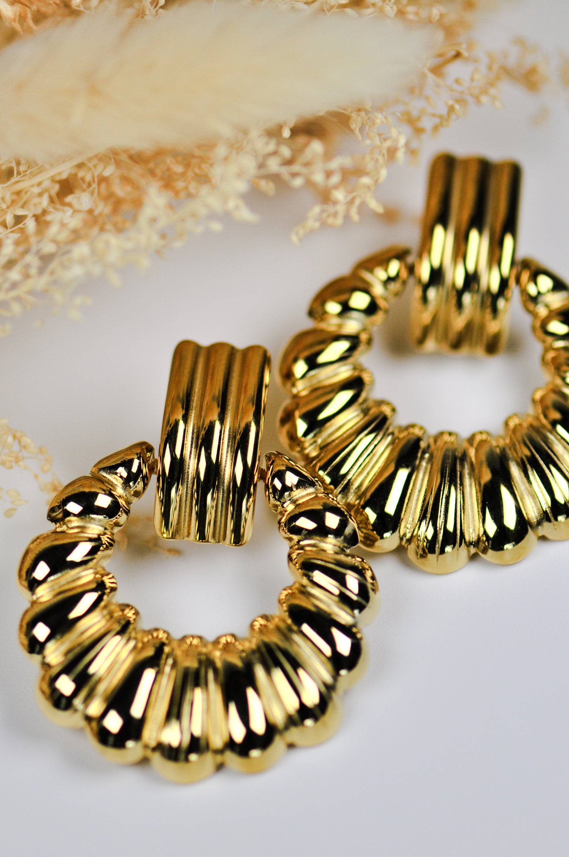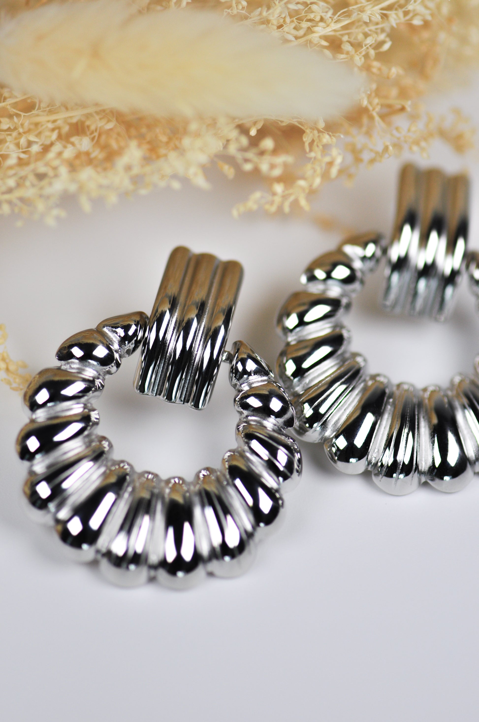Boucles d'oreilles pendantes en acier inoxydable. Tous nos bijoux résistent à l'eau, au soleil et ne rouillent pas dans le temps.