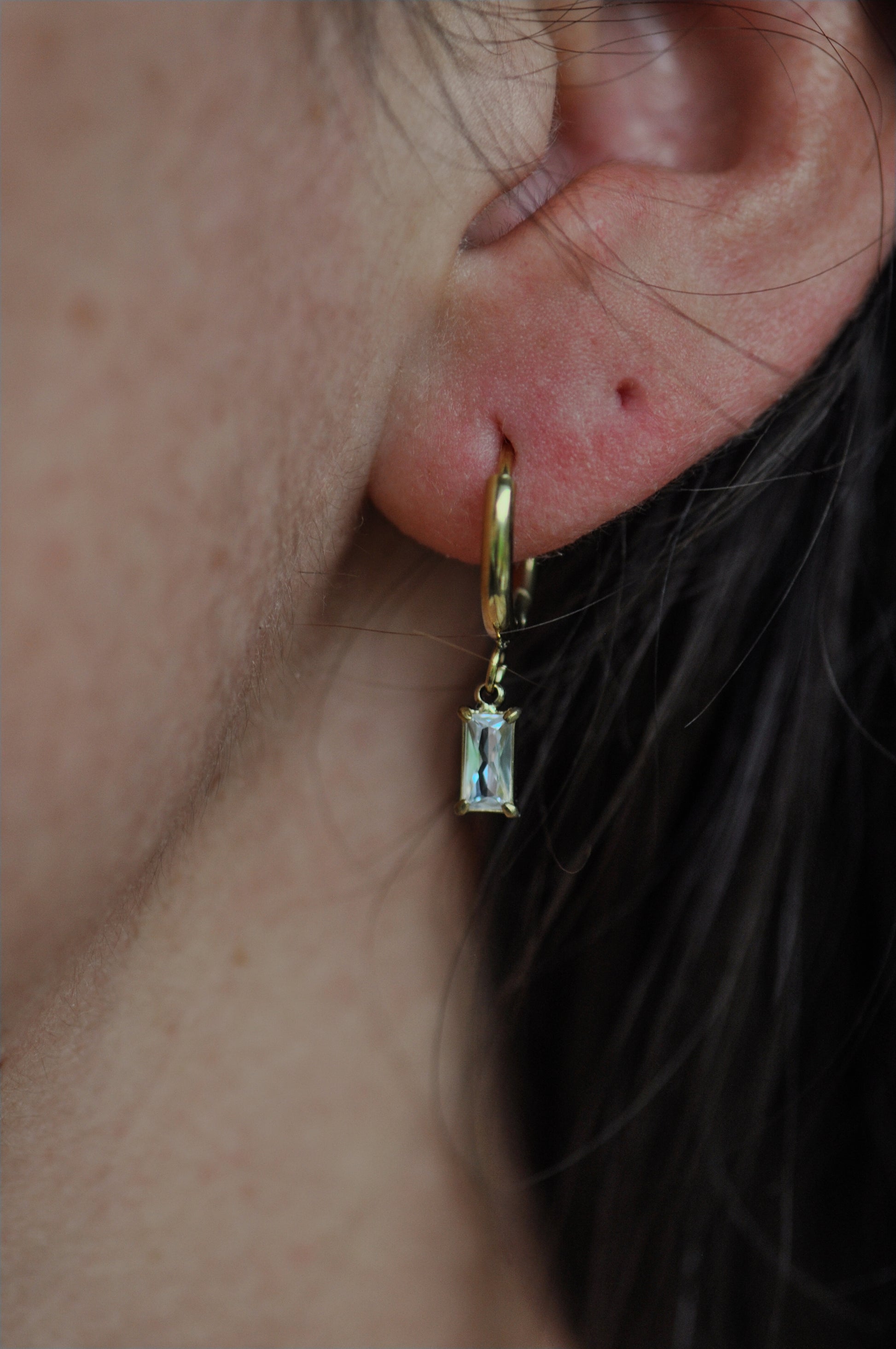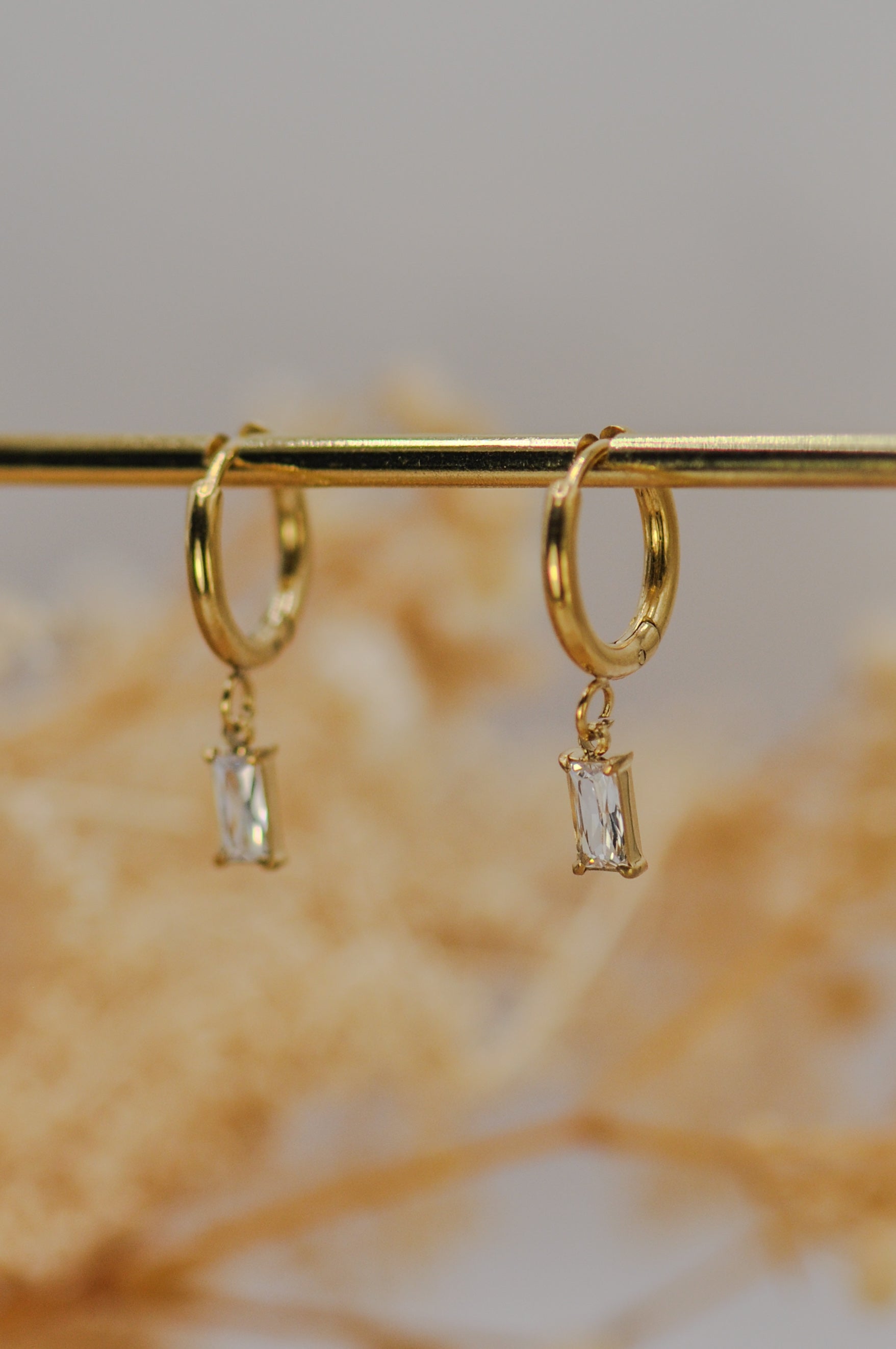 Les créoles Mila vont apporter une touche chic à votre tenue quotidienne, ces boucles d'oreilles sont à la fois légères et confortables à porter. Élégante et discrète, elles sont sublimées par un pendentif en cristal rectangulaire. Cette paire de créoles sont un indispensable pour toute collection de bijoux.