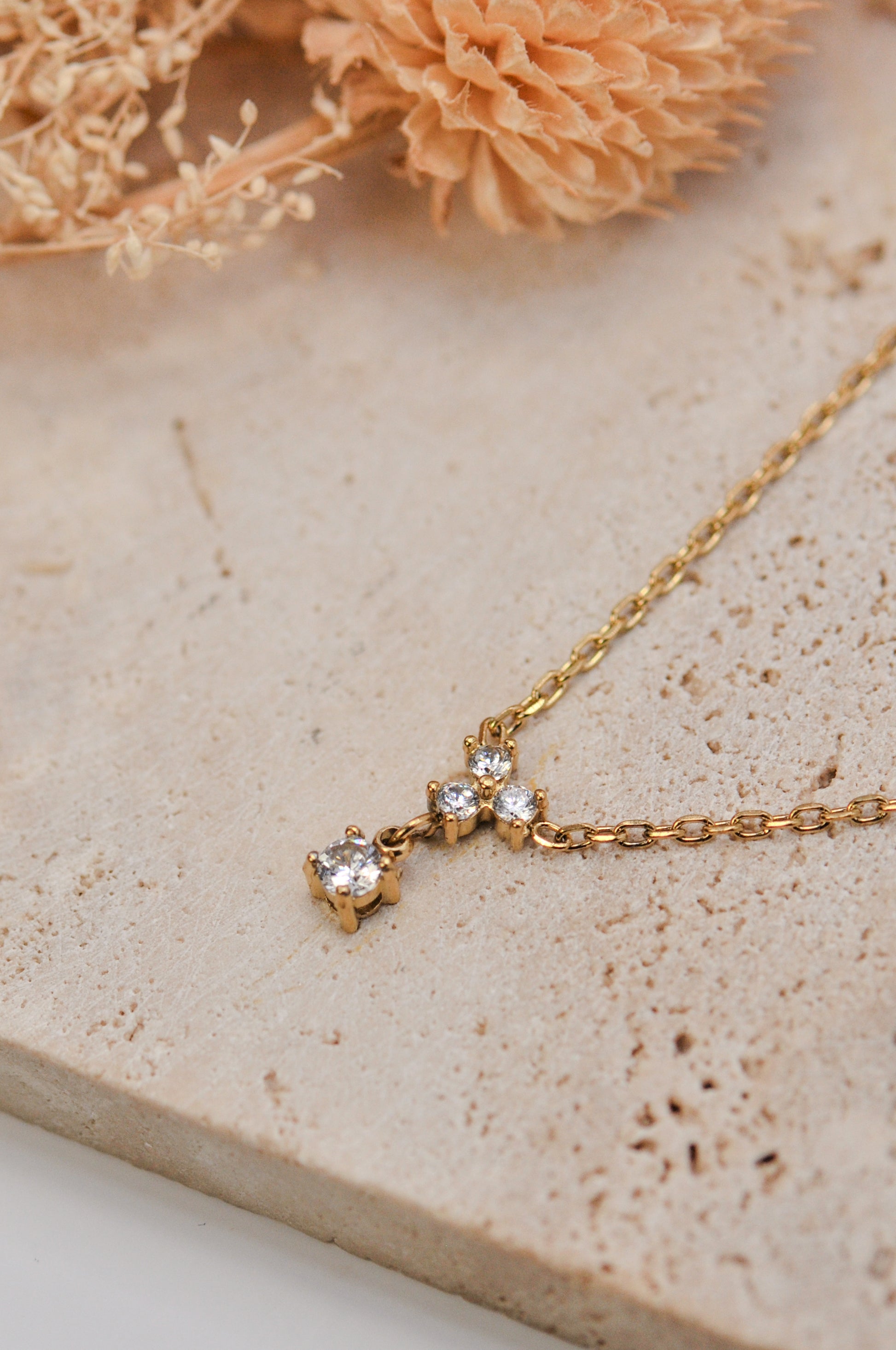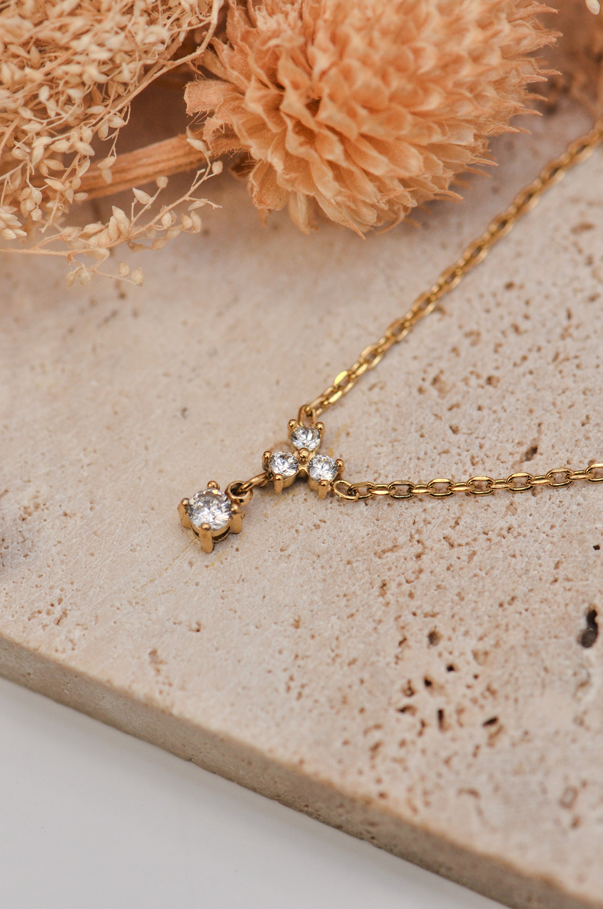 Discret et lumineux, le collier Mya est un essentiel du quotidien. Son design minimaliste met en valeur de véritables zircons, pour une brillance subtile et raffinée.