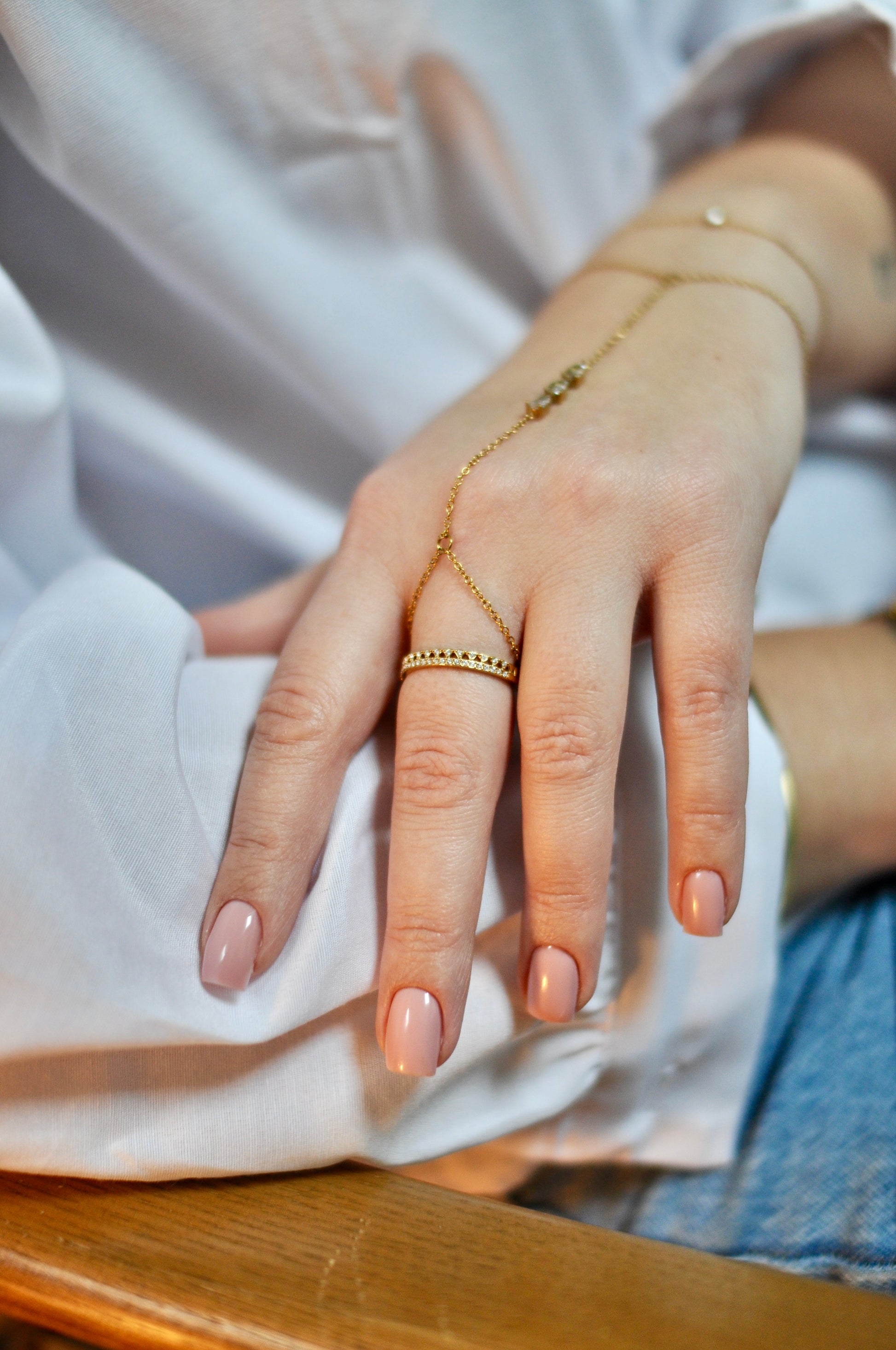 Grâce à sa taille ajustable, elle se porte facilement sur tous les doigts.