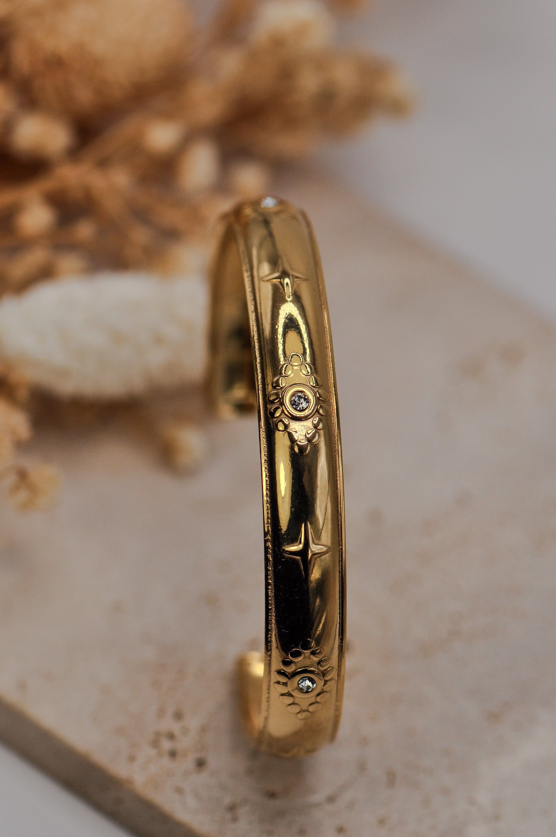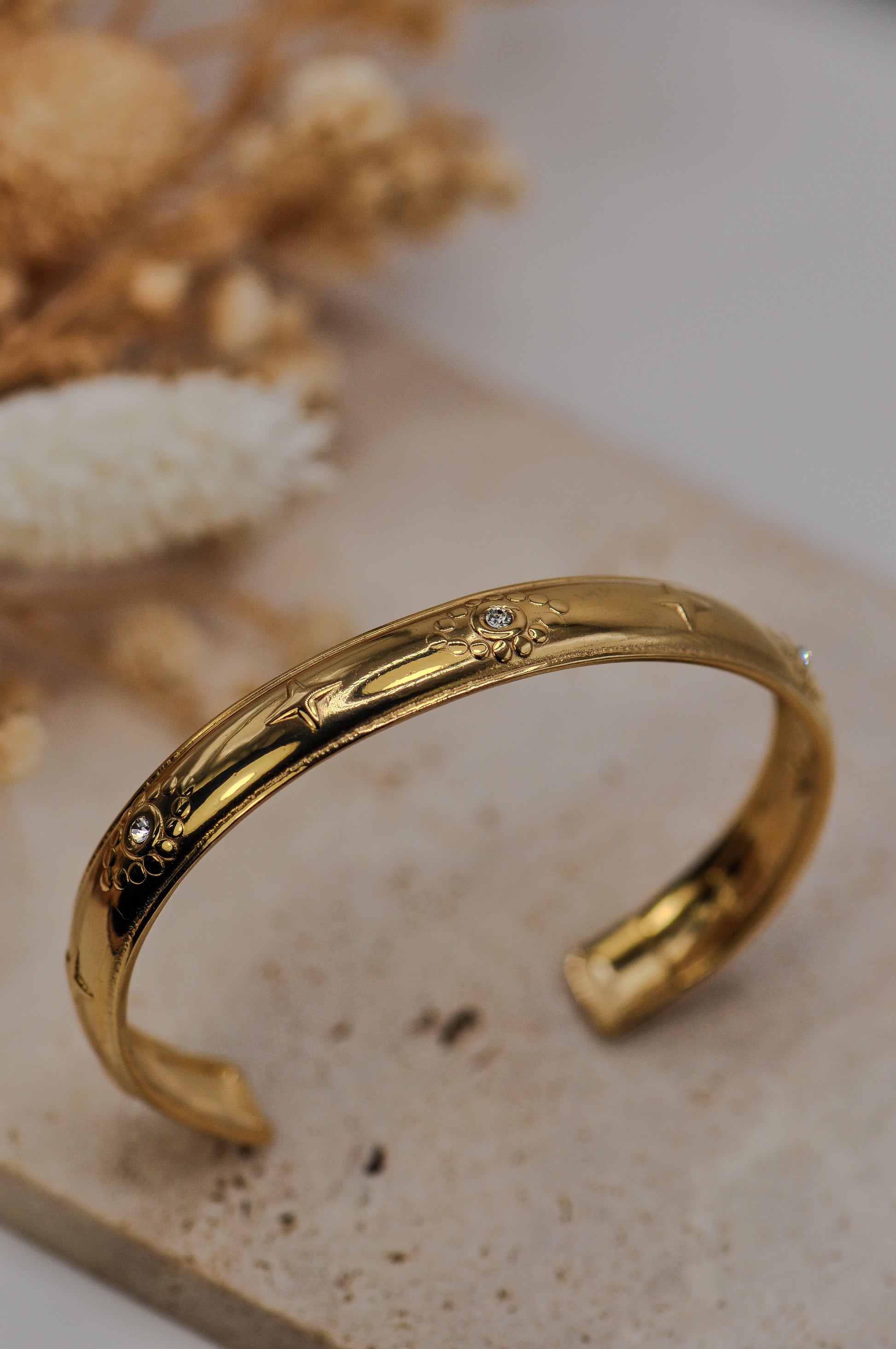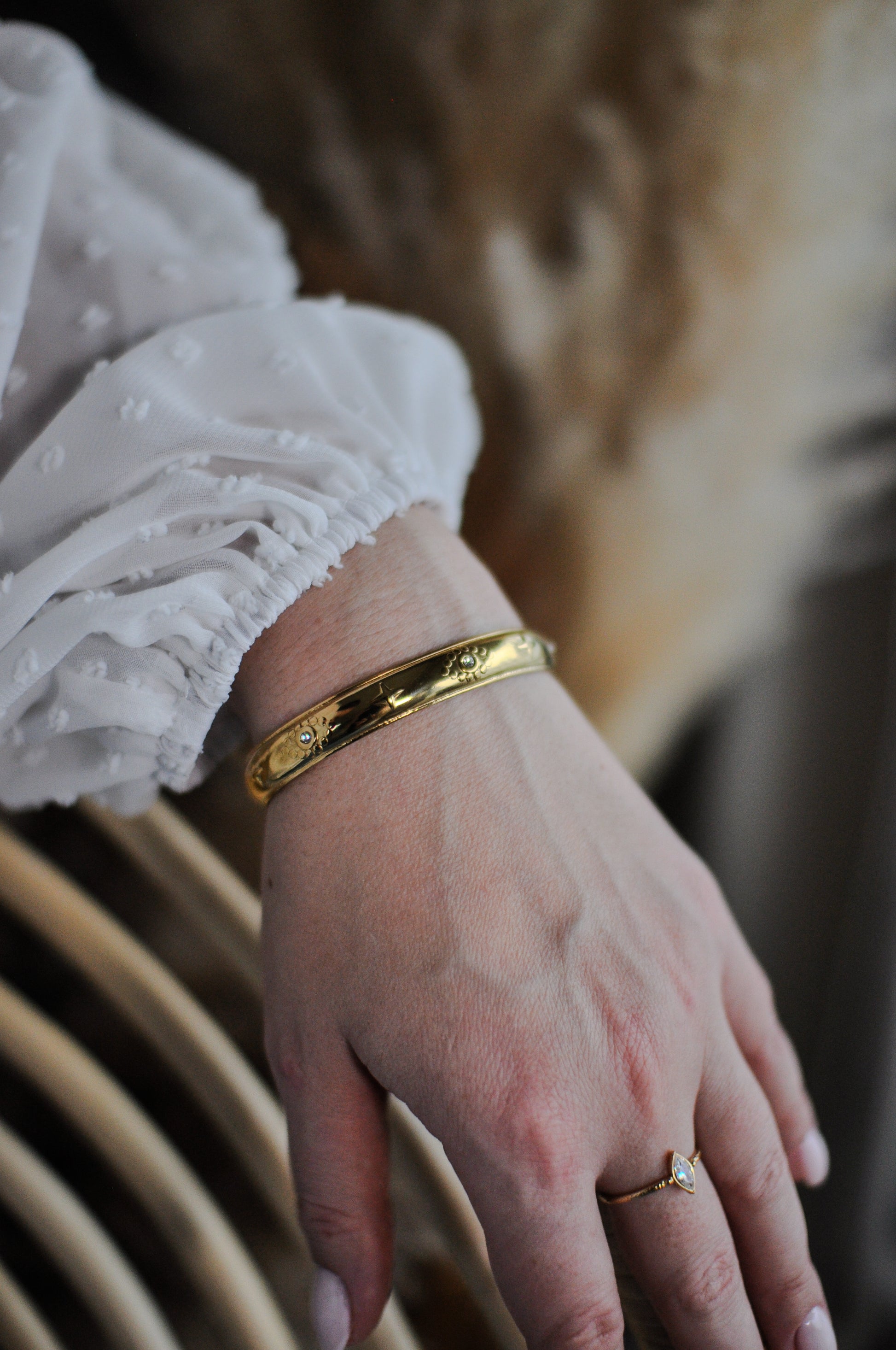 Jonc en acier inoxydable serti de véritables zircons. Le jonc Naëlys convient à tout type de poignet, même les plus petits car il est malléable et ajustable. C'est le jonc bohème de notre nouvelle collection.