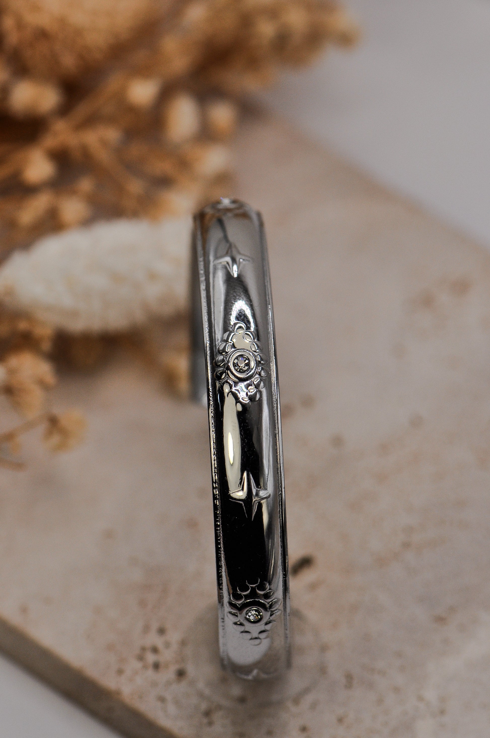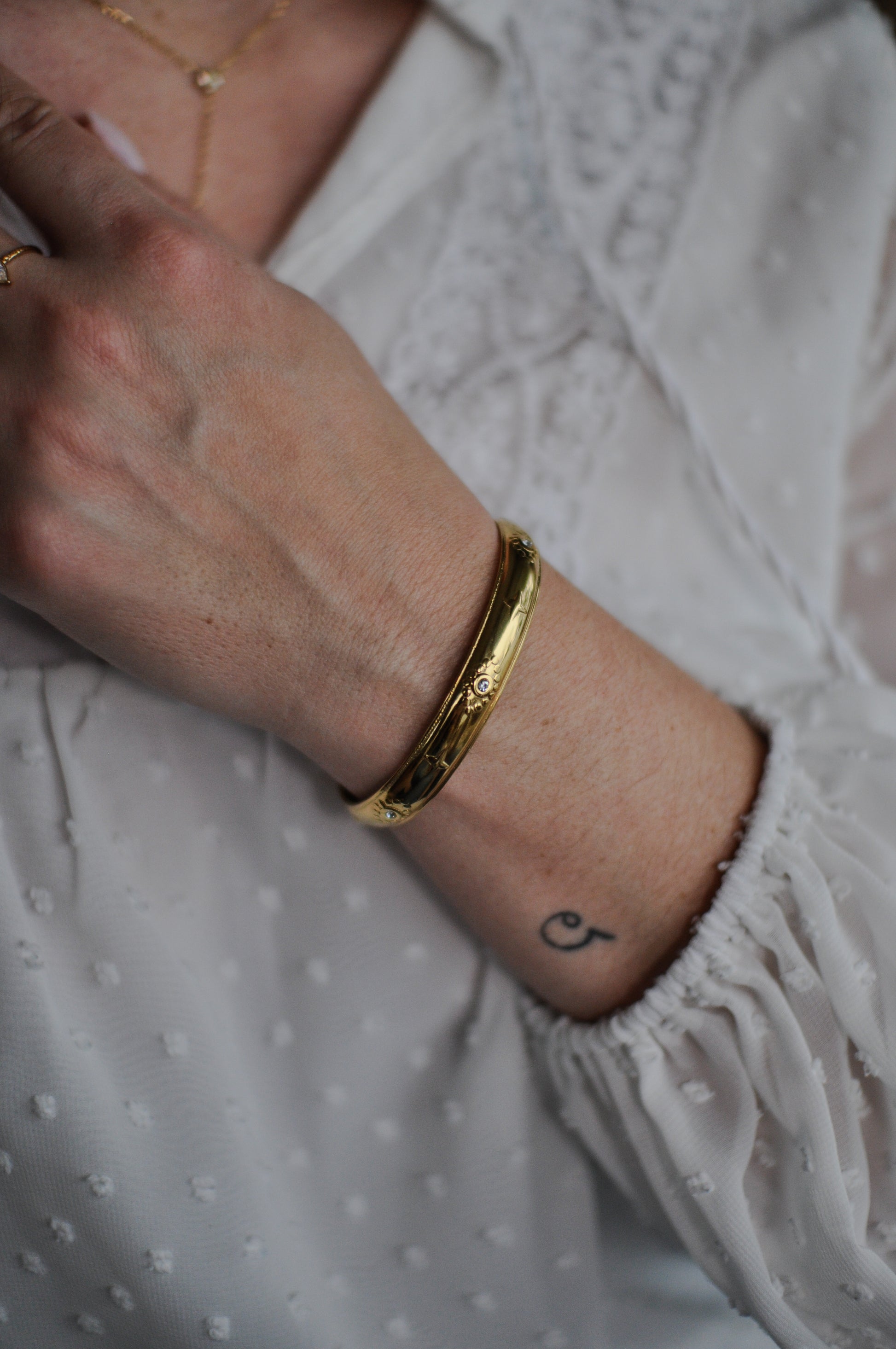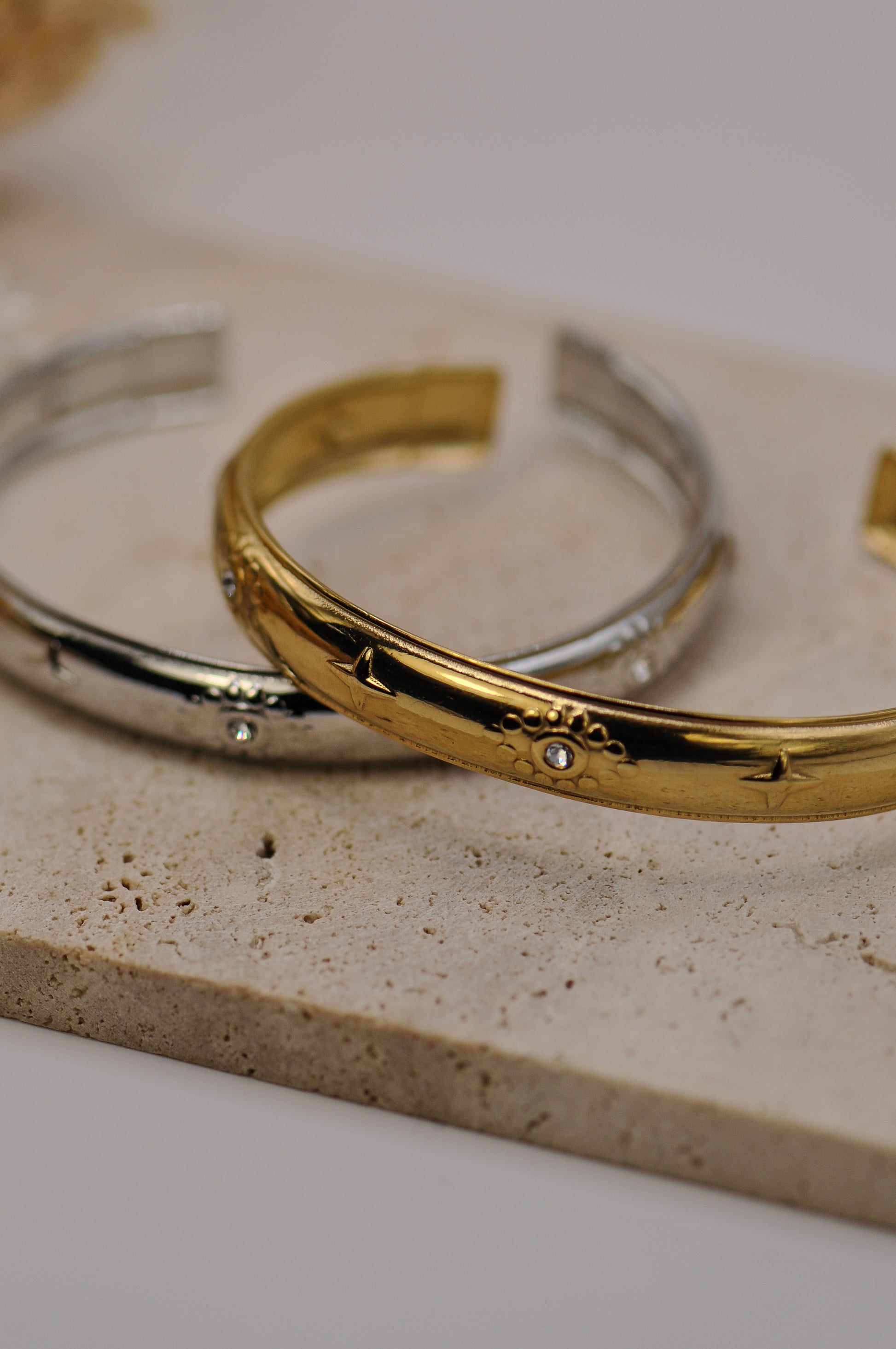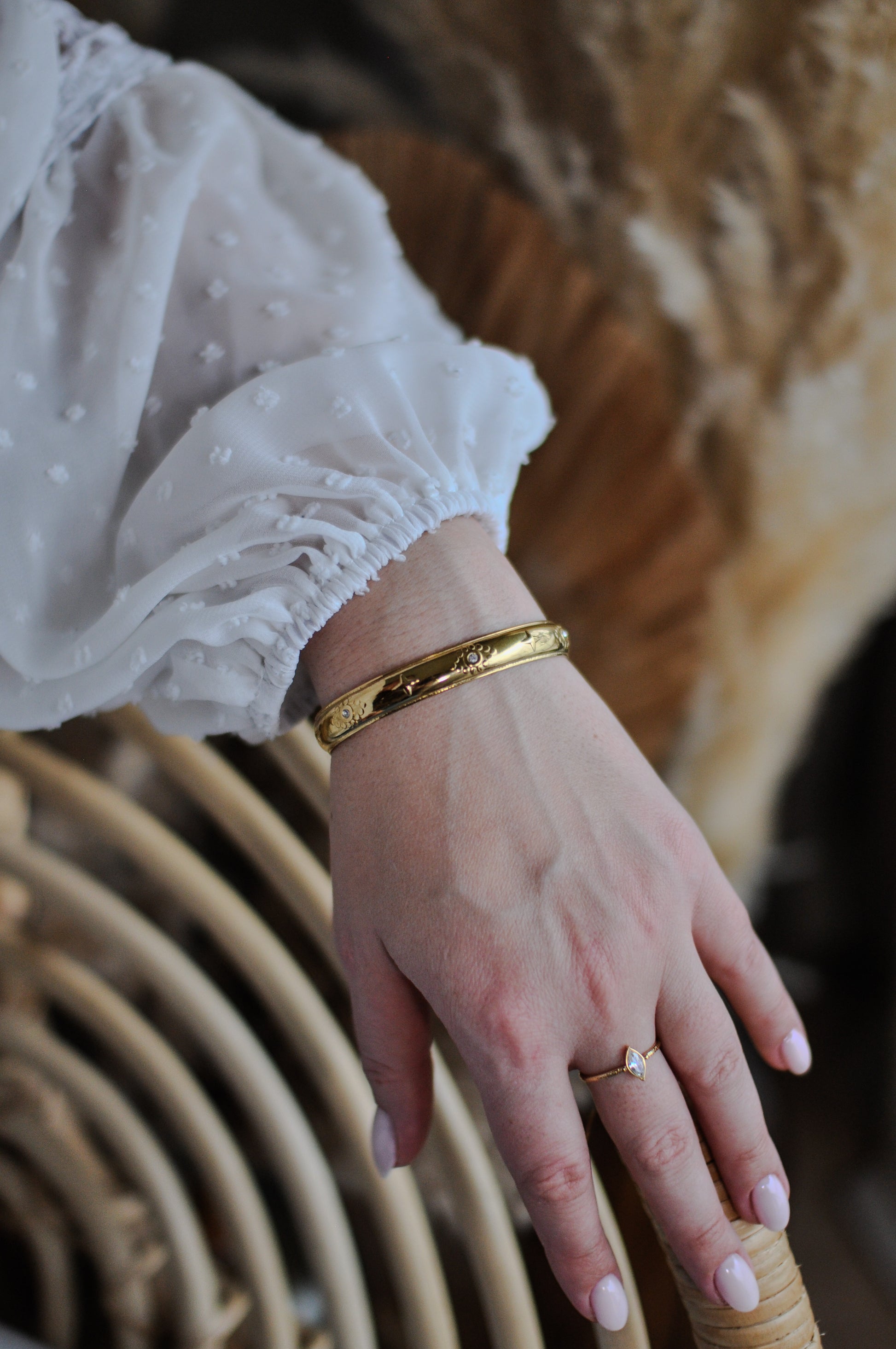 Jonc en acier inoxydable serti de véritables zircons. Le jonc Naëlys convient à tout type de poignet, même les plus petits car il est malléable et ajustable. C'est le jonc bohème de notre nouvelle collection.