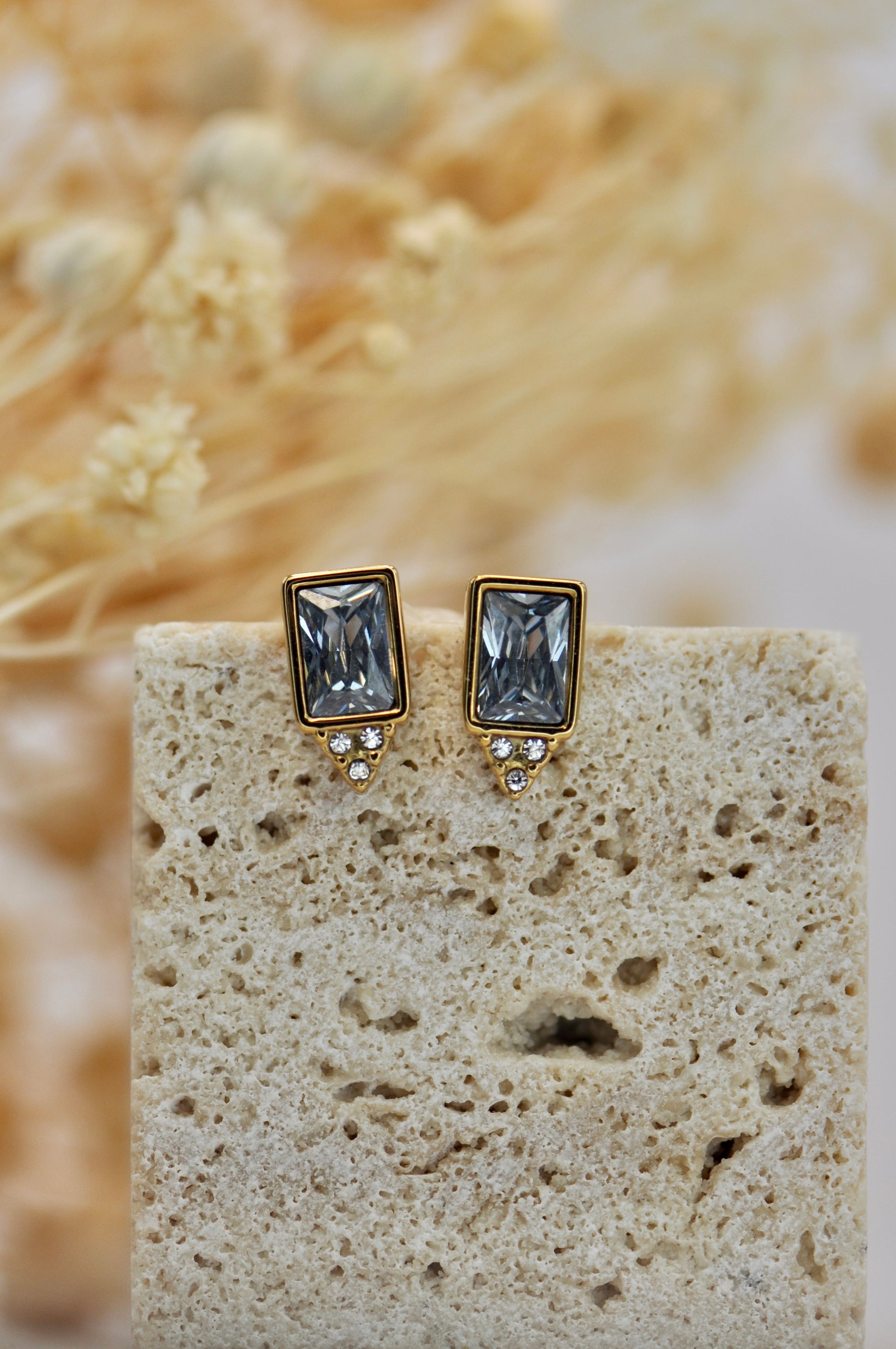 Puces d'oreilles en acier inoxydable et zircon. Tous nos bijoux résistent à l'eau, au soleil et ne rouillent pas dans le temps.