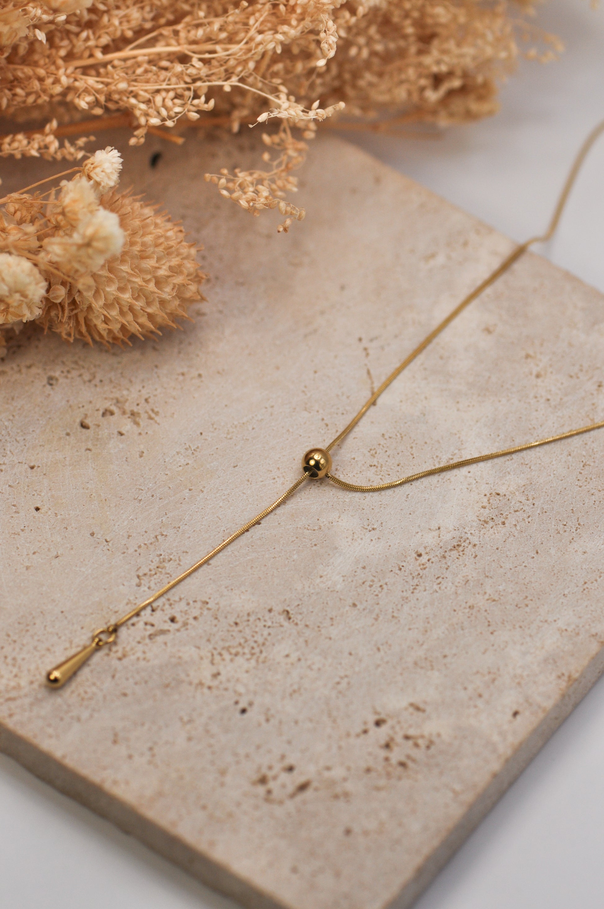 Élégant et raffiné, le collier Rita en Y, est en acier inoxydable. C'est un indispensable pour sublimer vos tenues. Grâce à son système coulissant, il s’ajuste facilement pour s’adapter à toutes vos envies.