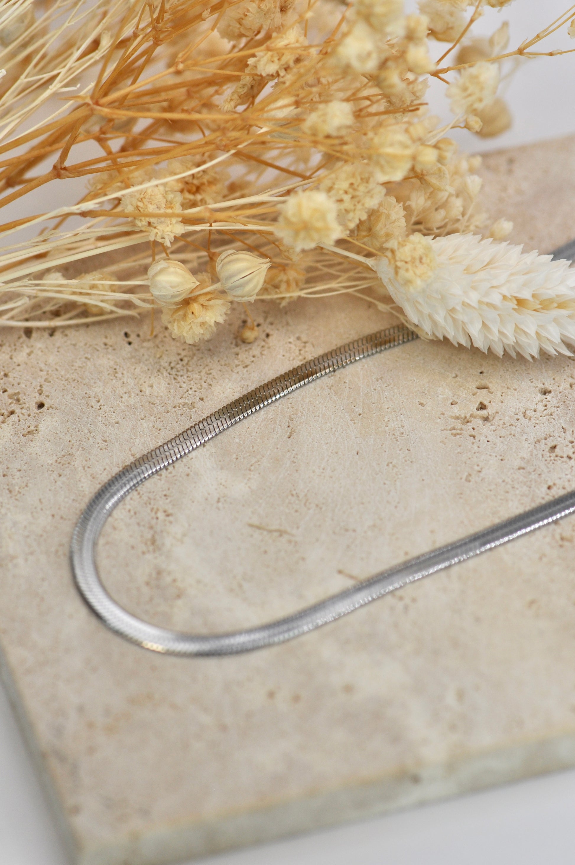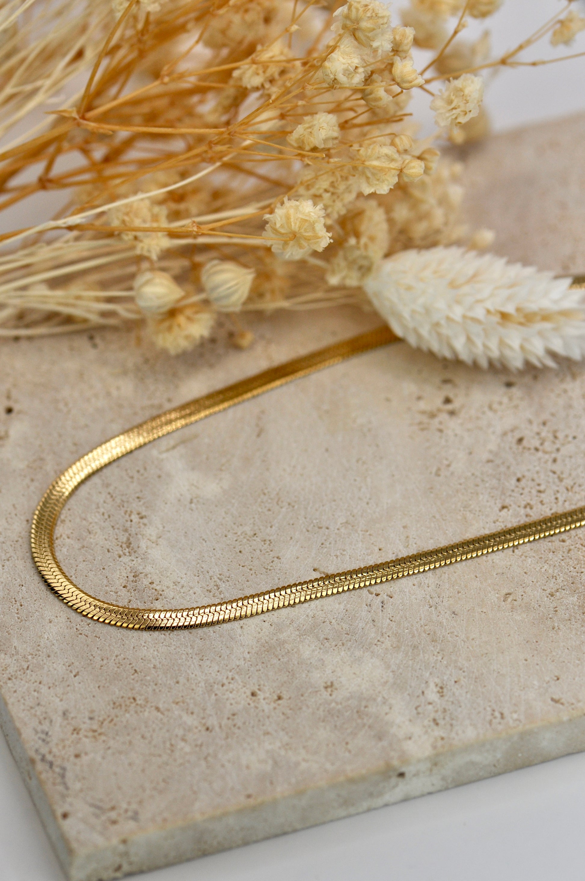 Épuré et intemporel, le collier Timéa est un essentiel du quotidien. Sa chaîne plat épouse délicatement la base du cou et capte la lumière avec subtilité.
